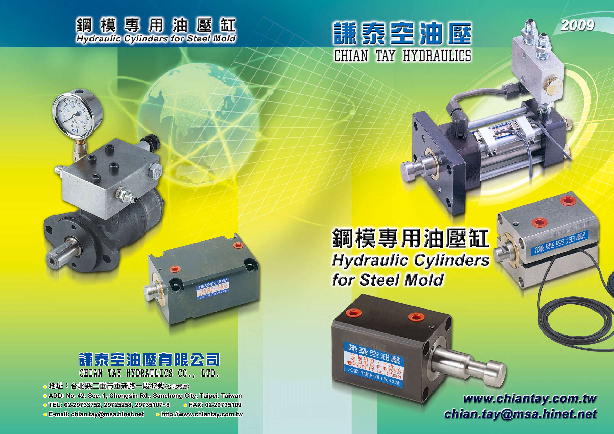 Chian Tay Hydraulics has engaged in the business of hydraulic cylinders for steel molds for over 20 years. Various hydraulic cylinders from the company are able to meet different requirements of the mold industry both at home and abroad, paving the way to become leading products in the line. The company is now in a better position to offer a wide range of hydraulic cylinders as follows:● Heavy oil FA type