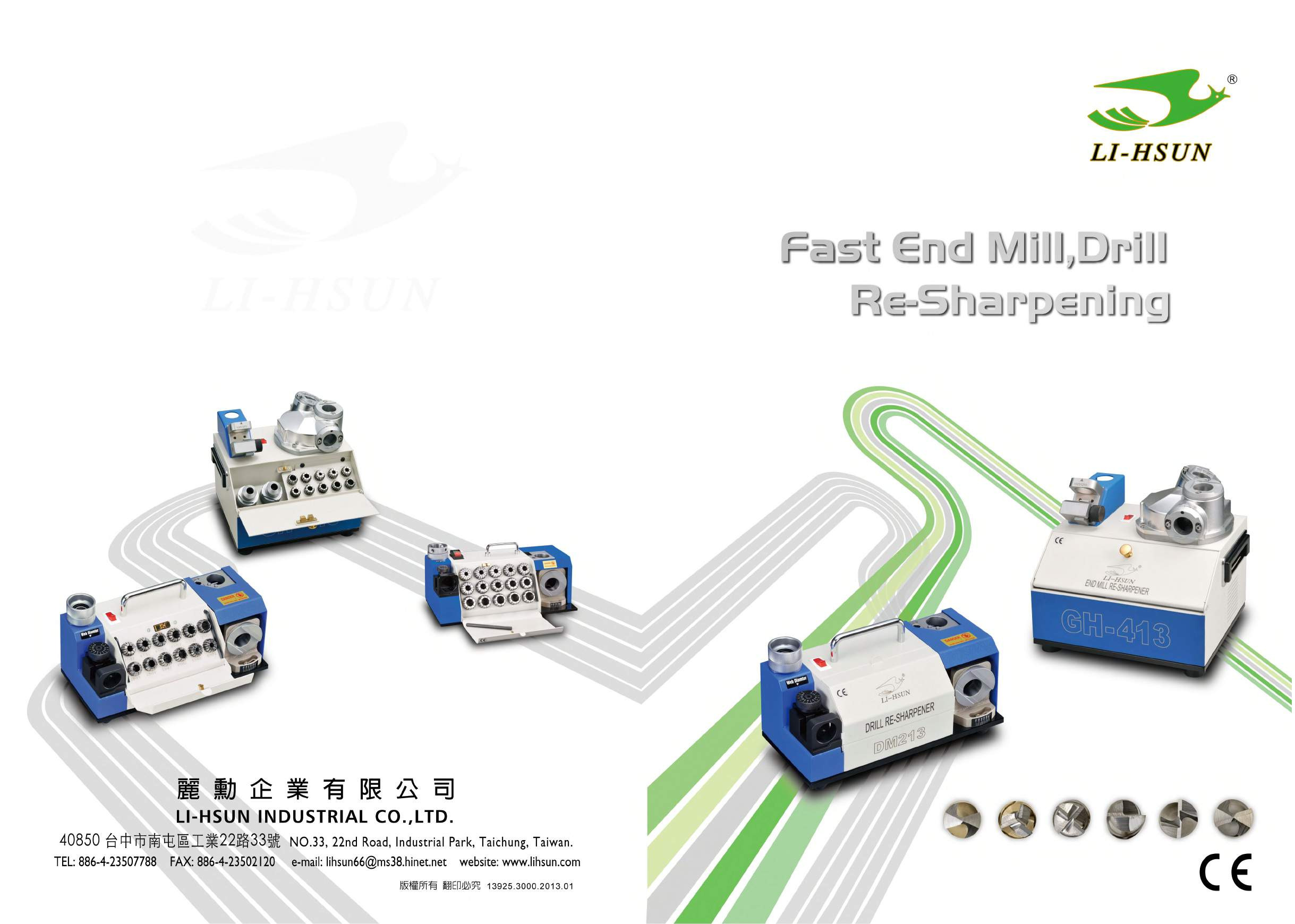 After more than three decades of rich experience having been accumulated, the specialized operations conducted with the improving technologies, along with the strong dedication and continuous effort from our staff to develop and design a series of newly innovative products, have altogether laid the solid foundation for Li Hsun to enter the global market. To face up to the challenges of the new century, Li Hsun progressively consolidates the symmetrical structure of its enterprise in order to increase the competitiveness of the products. At all times, Li Hsun aims to provide the users with superior products and outstanding service. Striving to continue our innovative product development with guaranteed quality is our ultimate and highest regard. Li Hsun currently devotes its R&D energy into fast drill and end mill re-sharpening machines.