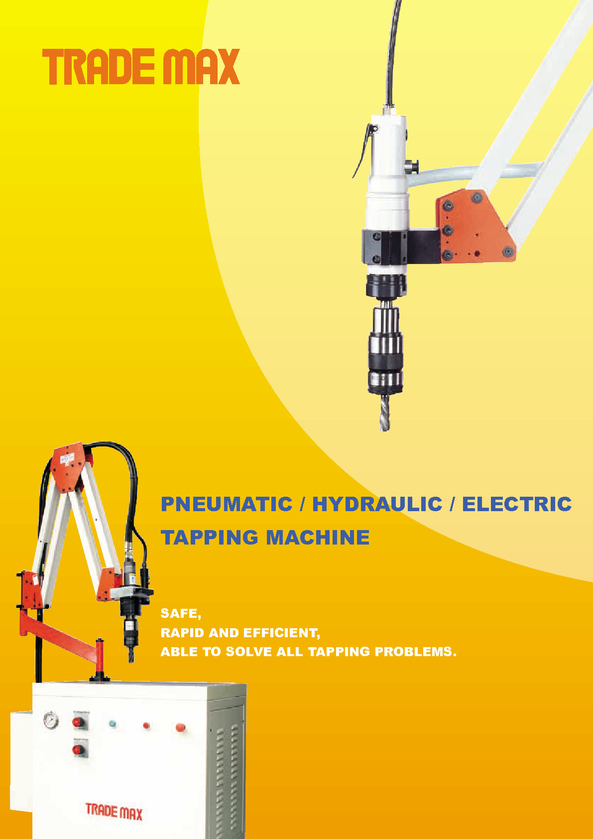 Maho was a manufacturer,established in the 1984, accompany with the trade marks TRADE MAX marketing to all over the world, to construct long term cooperation relationship with our client we got reputation from the tapping field that we had many our own exclusive monopoly. Maho was specialized in Pneumatic tapping machine, Hydraulic tapping machine, Electric tapping machine and relative assocceries, including tap holder and quick change tapping chuck in Taiwan have been 20 years. We are attach importance to brain gain, staff training in order to bring out the best quality,innovation and output new design , best quality and innovation.
