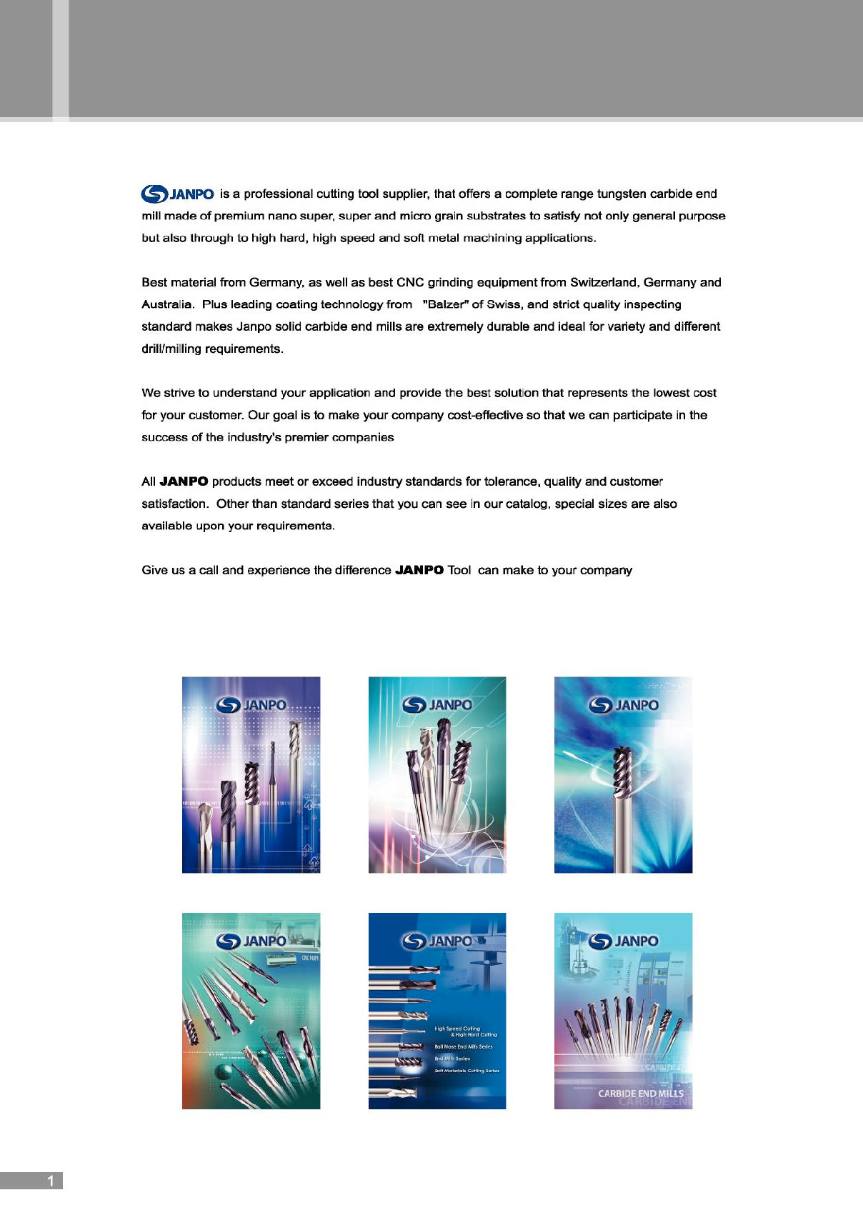 JANPO is a professional cutting tools supplier, that offers a complete range of premium nano super, super and micro grain solid carbide end mills substrates to satisfy not only general purpose but also through to high hard, high speed and soft metal machining applications.