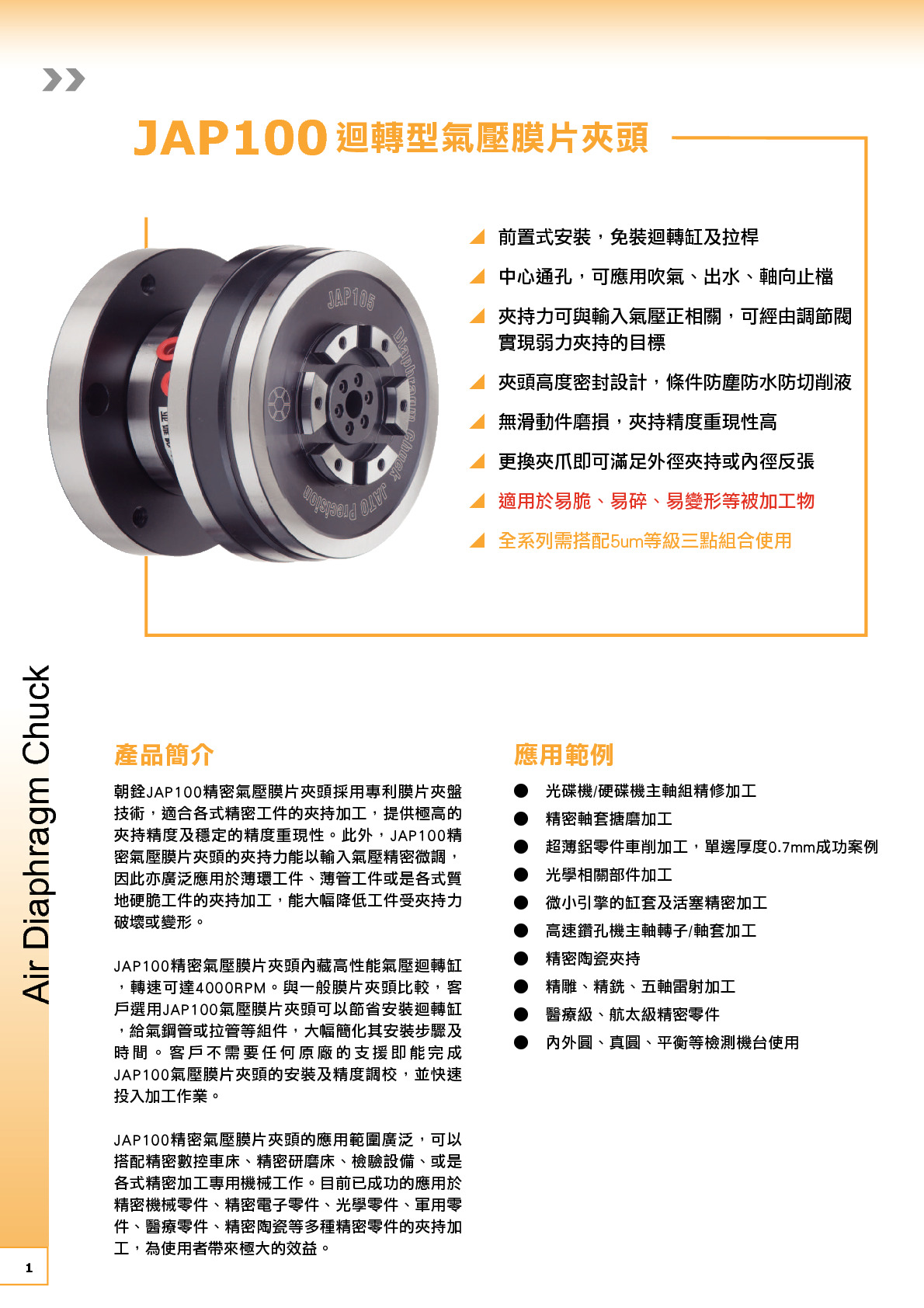 JATO's product line now includes: power chuck, collet chuck, diaphragm chuck, rotary cylinder, lathe chuck, and the accessories.
