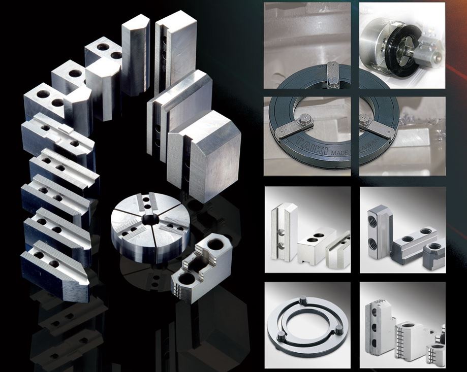 The workholding products have show such strong growth and will keep growing to meet the demands from the machine tool part segment, we offered products on an ODM basis and also fabricates custom-made work holding products to suit the specific requirement of clients. We've been successful in developing customized designs for a number of Chuck Jaws, which TAIKI's major production " offers the best solutions for all sorts of chucking applications, including Soft Jaws in various types, serration chuck jaws , inch soft jaws , aluminum soft jaws , Round Jaws , Tongue & Groove Soft Top Jaws , Hard Jaws , Jaw Boring Rings , Jaw Boring Fixtures , Jaw T-Nuts , height jaws , width jaws , length jaws and more.