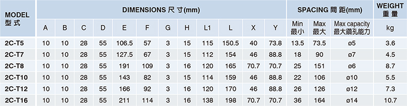 *Adjustable spacing between spindles: 13.5 - 164 mm.