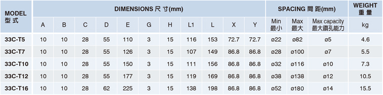 *Adjustable spacing between spindles: ø22 - ø180 mm.