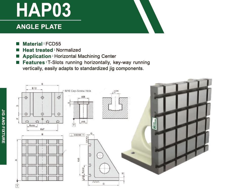 1.Material: FCD550 2.Heat treated: Normalized 3.Application: Horizontal Machining Center 4.Features: T-Slots running horizontally,Key-way running Vertically,easily adapts to standardized jig components