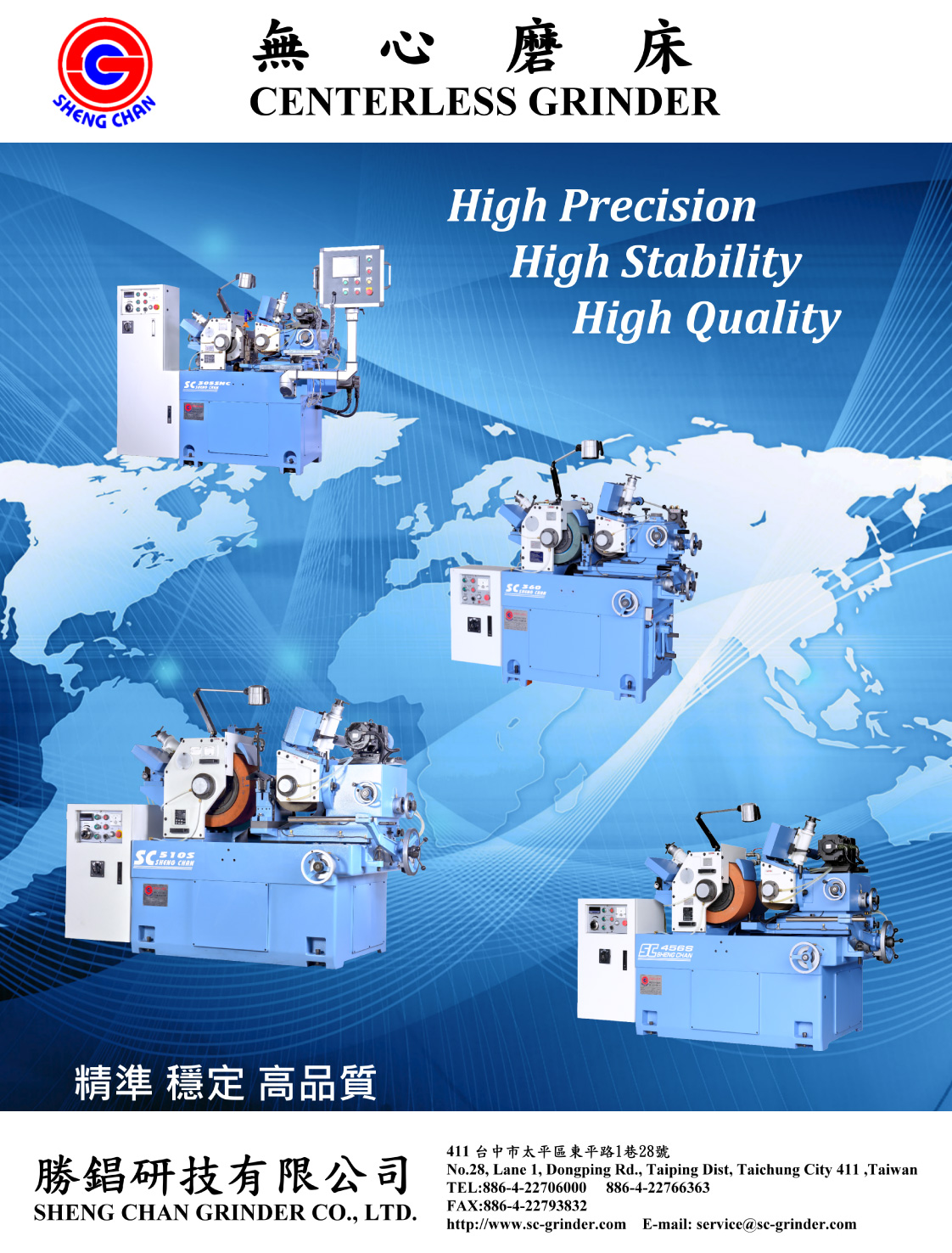 1991年成立勝菖企業有限公司,陸續成功研發SC-305、SC360、SC456、SC510無心磨床。每一種機型皆可加裝自動送料、自動卸料、自動研磨等裝置,以達到節省人力,控管品質之目的。