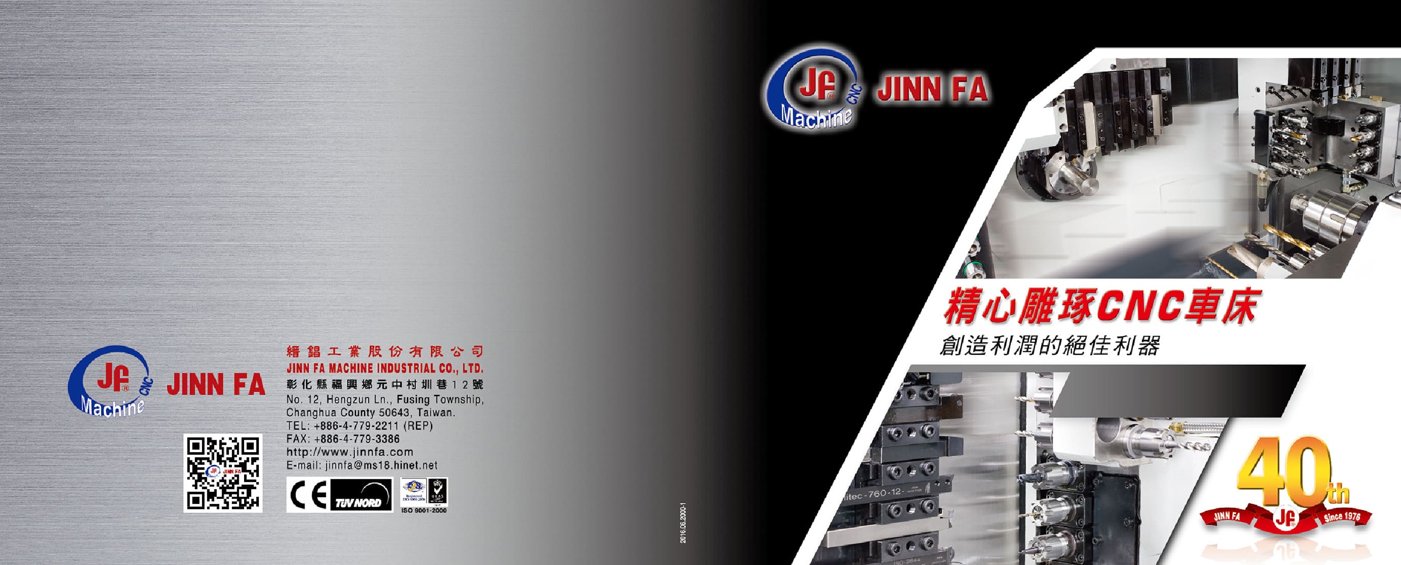 JINN FA創立於1976年的縉錩工業股份有限公司,是一家精密工具機的製造廠。專業設計製造有自動車床、CNC自動車床、CNC加工中心機,及各類專用機械等。秉持不斷技術創新,技術領先的公司信念,縉錩公司對先進工具機的研發投入了無數的心血,多年來,縉錩機械已銷售到全球市場,目前已有一完整系列產品從兩軸櫛式至七軸刀塔式之車床,每一部縉錩機械都擁有最高的品質標準,多功能為零件加工最佳的競爭優勢。除此之外,縉錩機械更展現出匠心獨運的機械性能,以及卓越特出的機械精度,放眼未來縉錩公司將持續努力,以維持技術領先的傳統,創造追求新技術,以及徹底落實嚴格品質制度。
