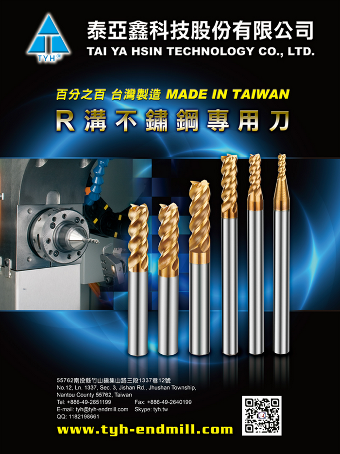 【TYH_泰亞鑫科技股份有限公司】是專業的銑刀製造商,我們專精於製作與經銷鎢鋼銑刀、鑽頭、成型刀、刀桿、筒夾,所生產的刀具適用于切削高硬度、高速度或軟體金屬的加工工件。