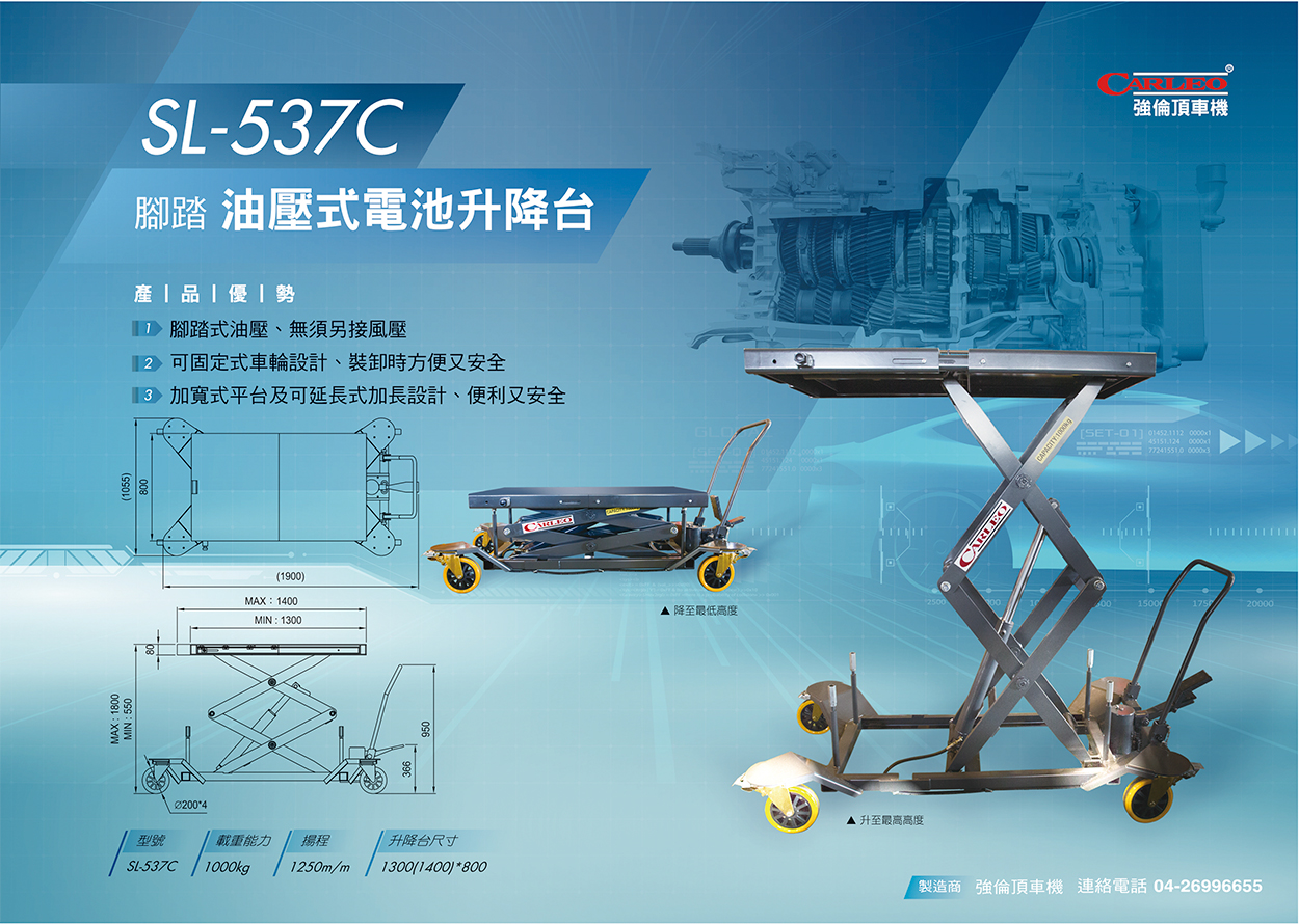 CARLEO 是汽車修理設備的的領先製造商,專注於汽車頂車機、千斤頂、板金校正台、煞車試驗器及側滑試驗器。