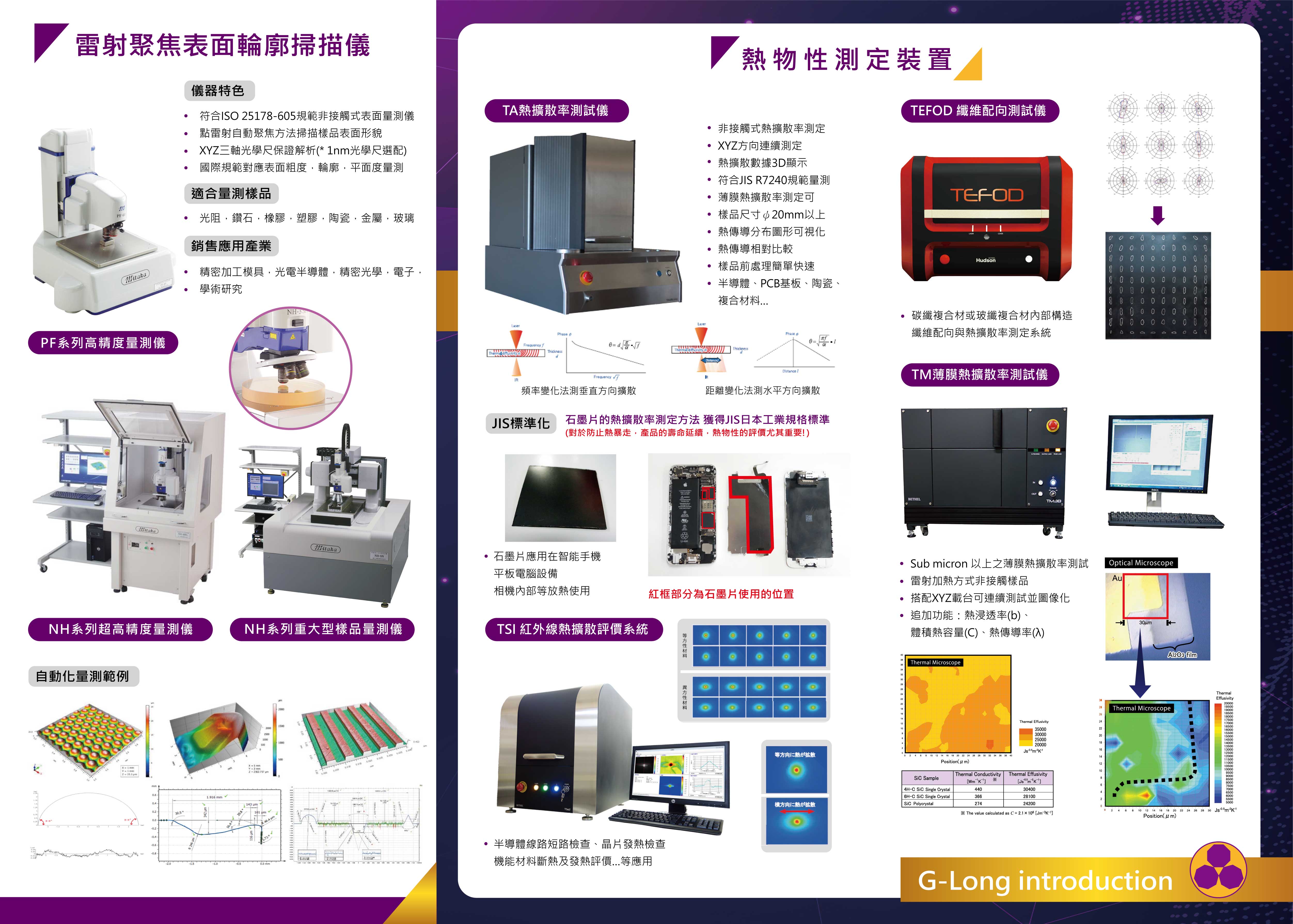 營業項目概分為:高分子精密材料固化試驗設備、表面形貌及輪廓量測儀器、影像尺寸量測分析軟體、光通訊量測儀器、及環境測試設備、客製化檢查設備。