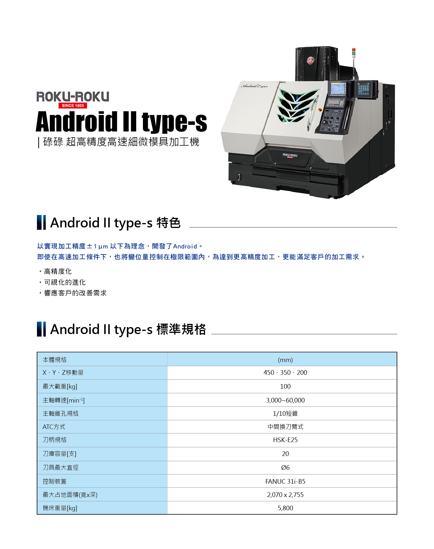 ROKU-ROKU Android II type-s | 碌碌 超高精度高速細微模具加工機