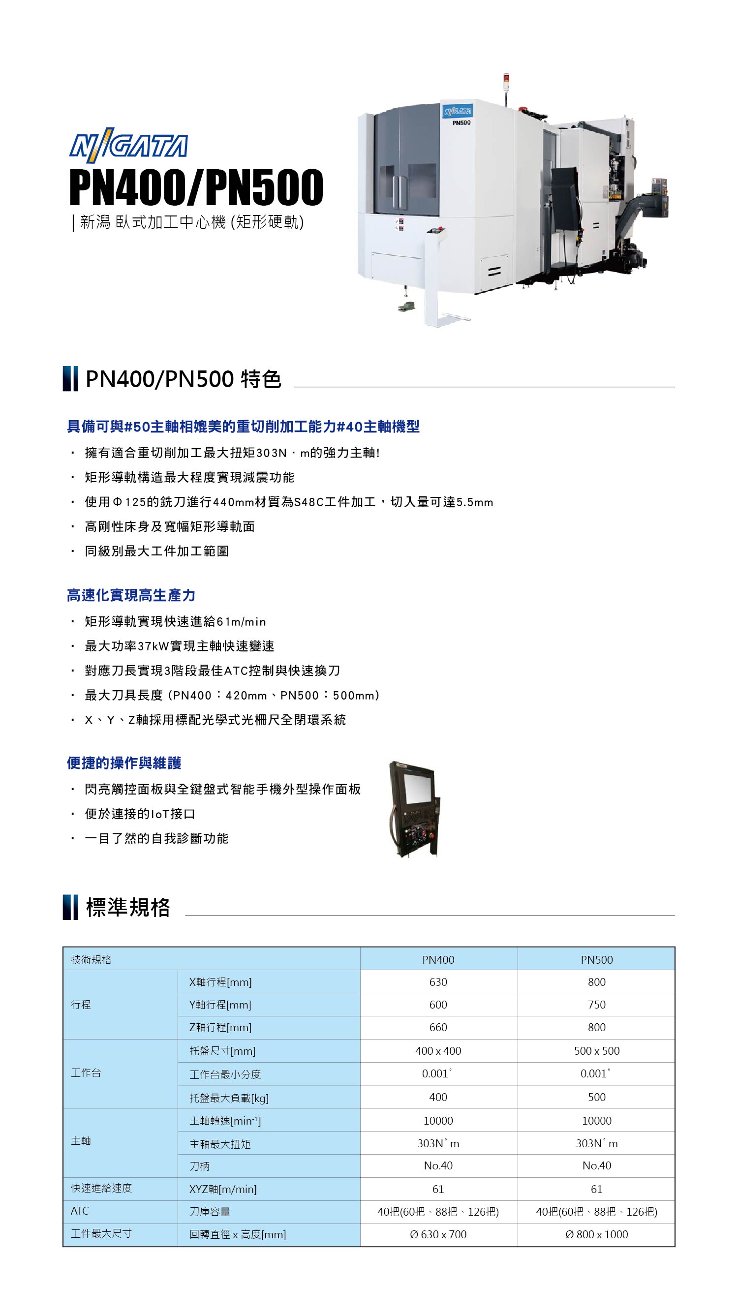 NIIGATA PN400/PN500 | 新瀉 臥式加工中心機 (矩形硬軌)