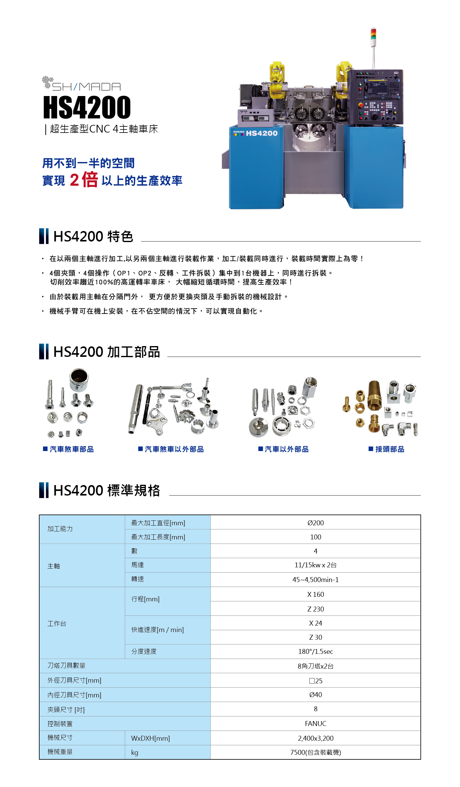- SHIMADA HS4200 | 超生產型CNC 4主軸車床