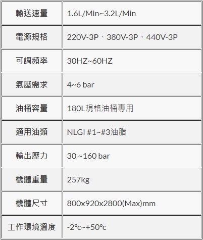 2.裝有油位下限警報器,自動顯示換油桶時機,排除生產線上斷油現象。