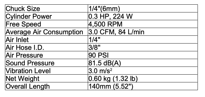 1/4'' Mini Angle Low Speed Pneumatic (Air) Drills