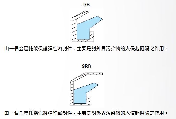 由一個金屬托架保護彈性密封件,主要是對外界污染物的入侵起阻隔之作用。