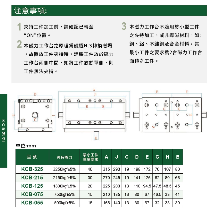 4.本磁力工作台不適用於小型工件之夾持加工。