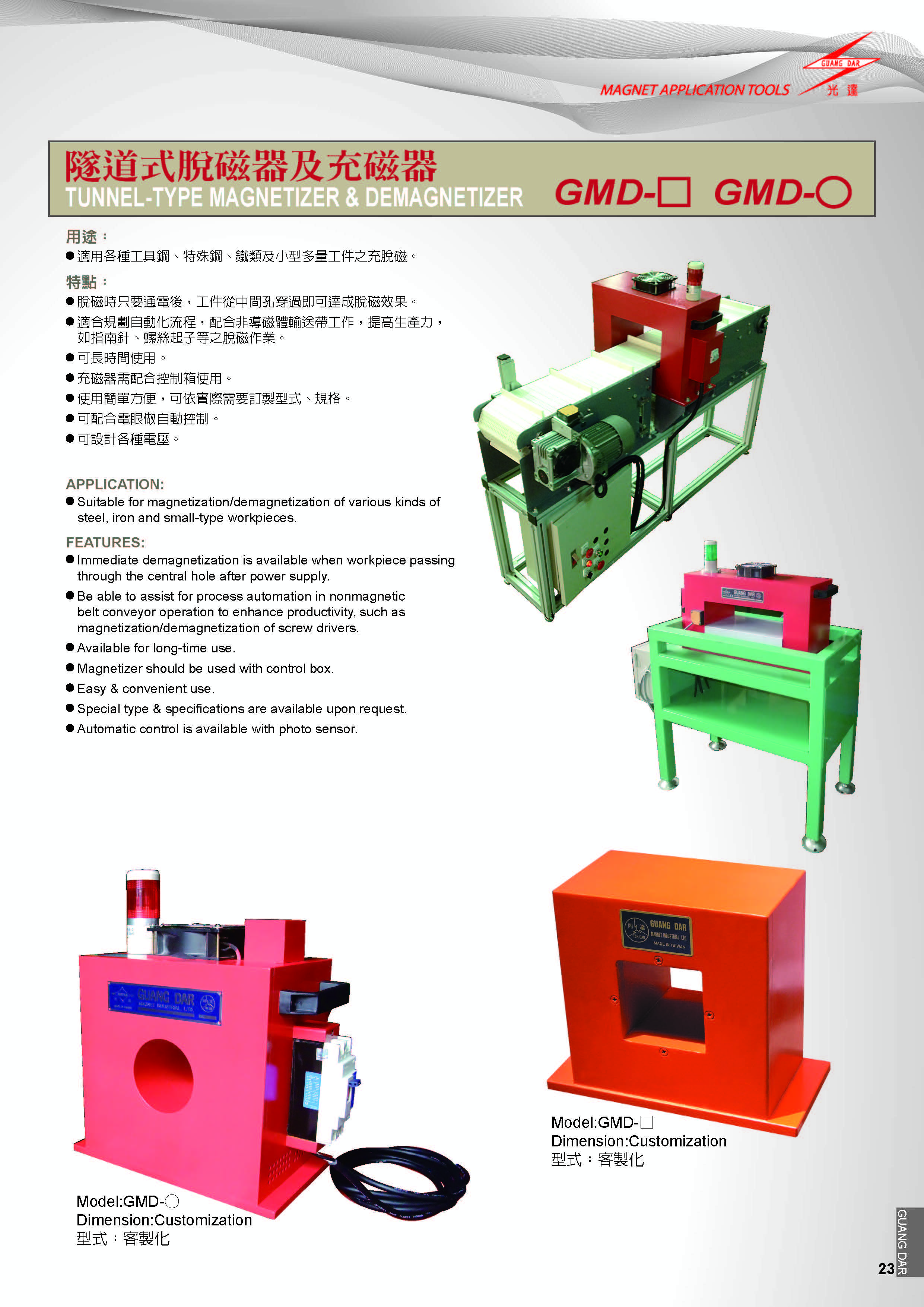 The name of company was changed to the present one as -- Guang Dar Magnet Industrial Ltd. in 1987 for further bigger scale of space as well as its business. For cooperation to grinding machine demand, a much thinner and lighter and more even on the magnetic field of Standard Electromagnetic Chuck (GI) as well as the Permanent Magnetic Chuck (GL) for EDM machine were presented the following year.