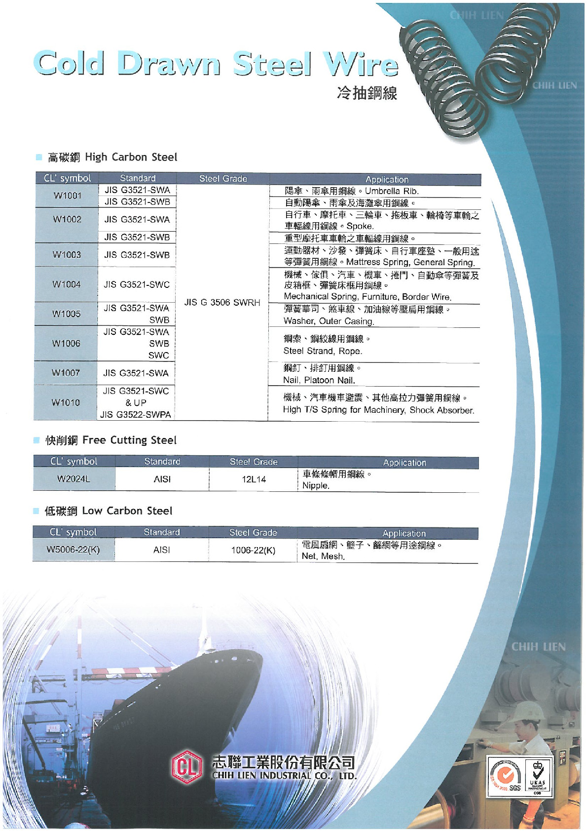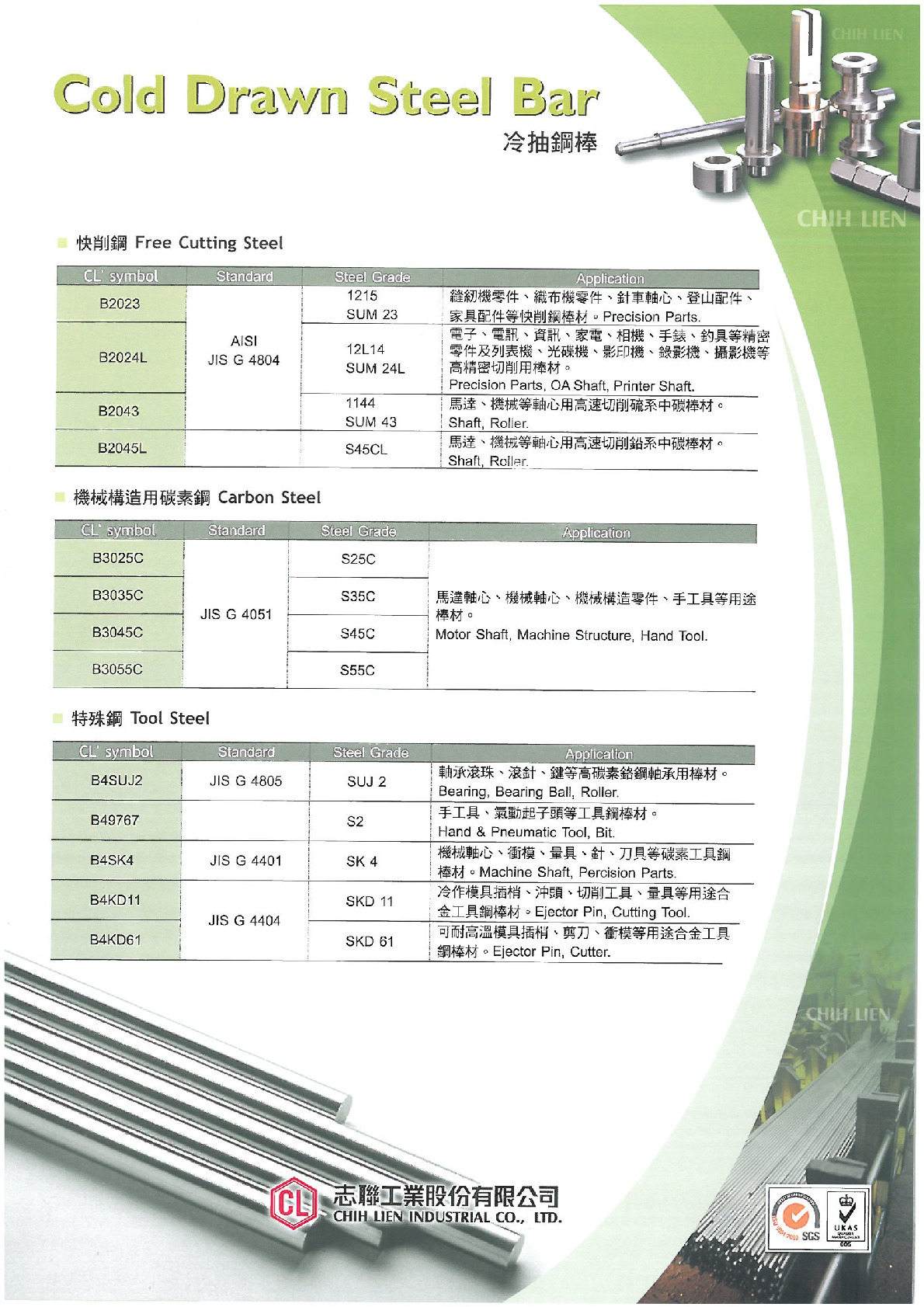 Chih Lien Industrial Co., Ltd., established in 1973, is the longest history company specializing in Cold-drawn Steel Bar and Steel Wire manufacturing, and also the first share listed company in the fields of steel bar and wire industry in Taiwan Stock Exchange Market.