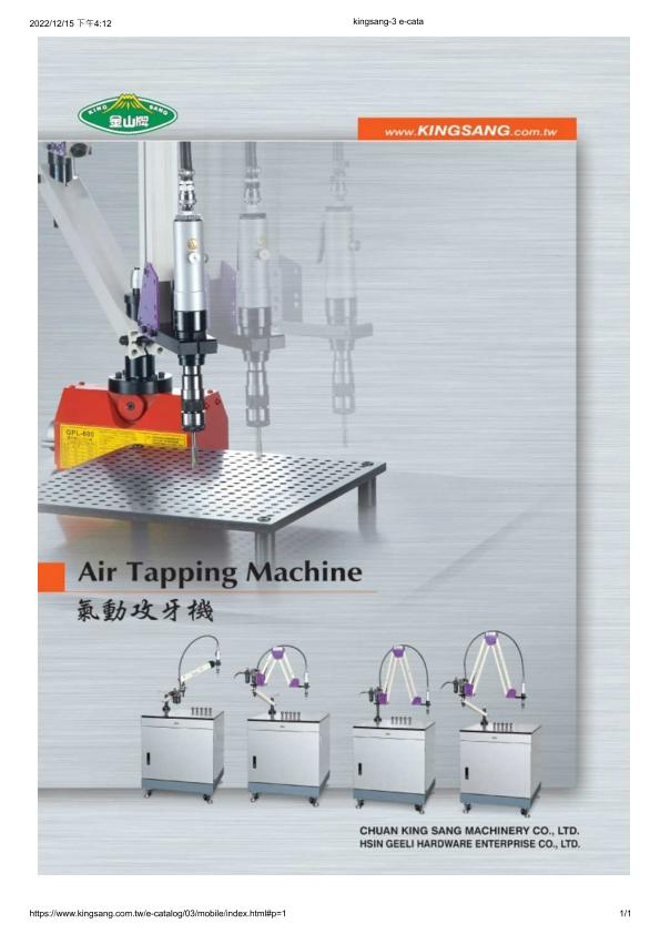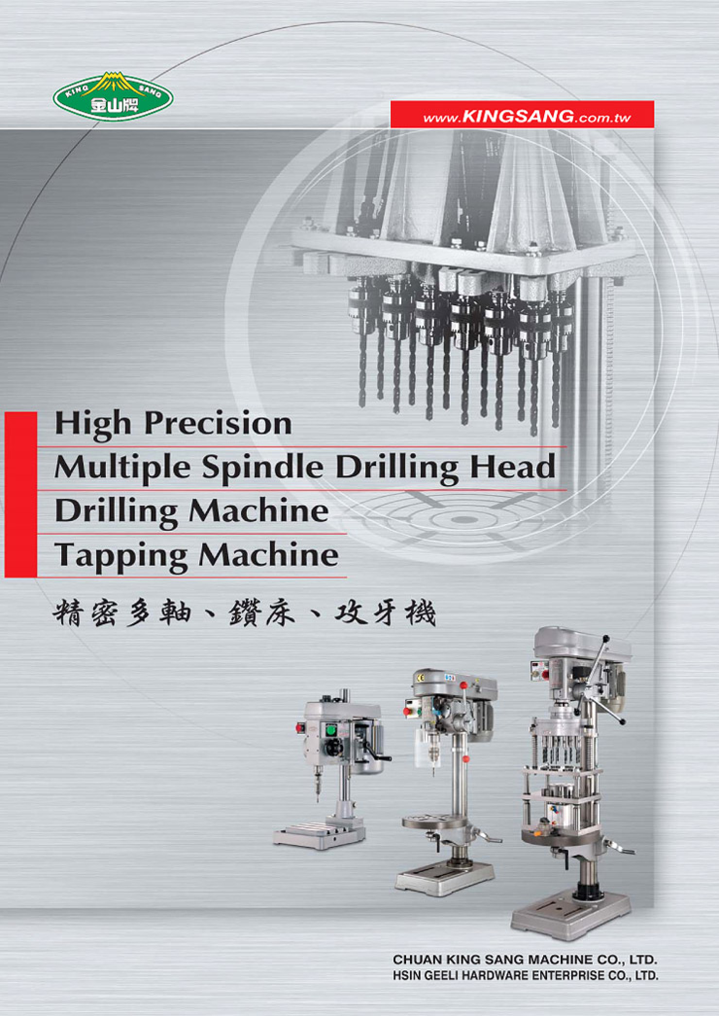 Since 1976, CHUAN KING SANG MACHINERY CO., LTD. / HSIN GEELI. has been engaged in precision drilling machines ; tapping machines and multi-spindles machine heads. We are proud to provide a complete range of sophisticated machines, which are highly efficient, accurate, stabile and noiseless.