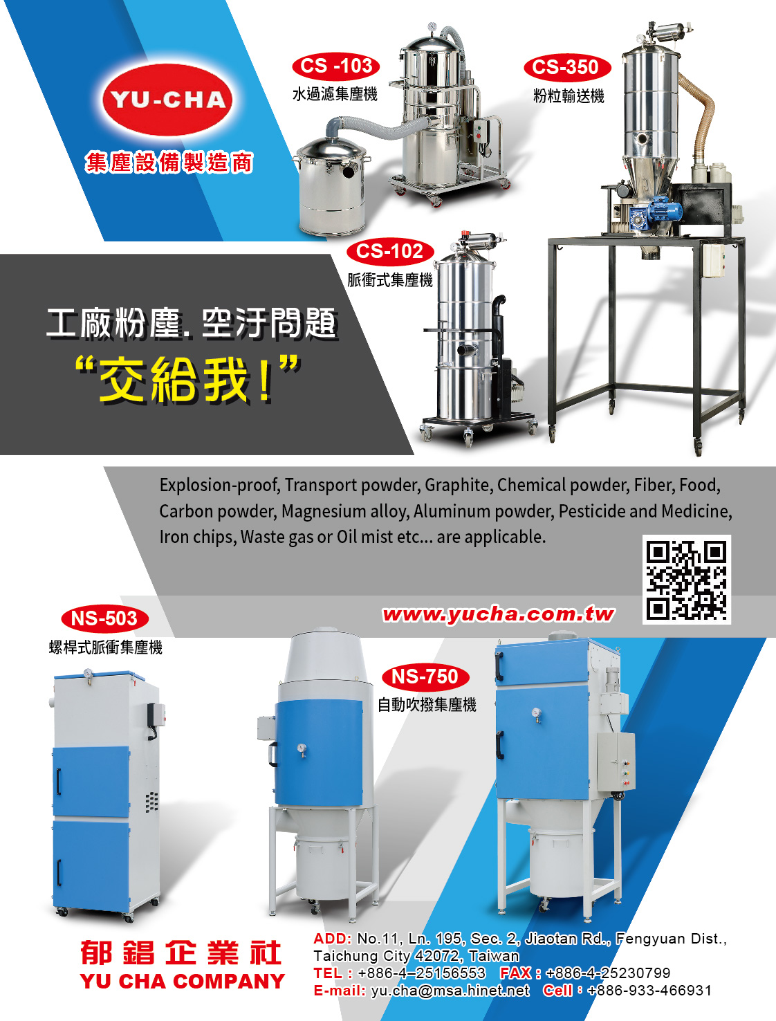 Based on the Yu Cha's outstanding research and development capability, we will constantly develop high performance machines with high quality to help our customers improve their working environment. And these have been Yu Cha's insistence since the company established.