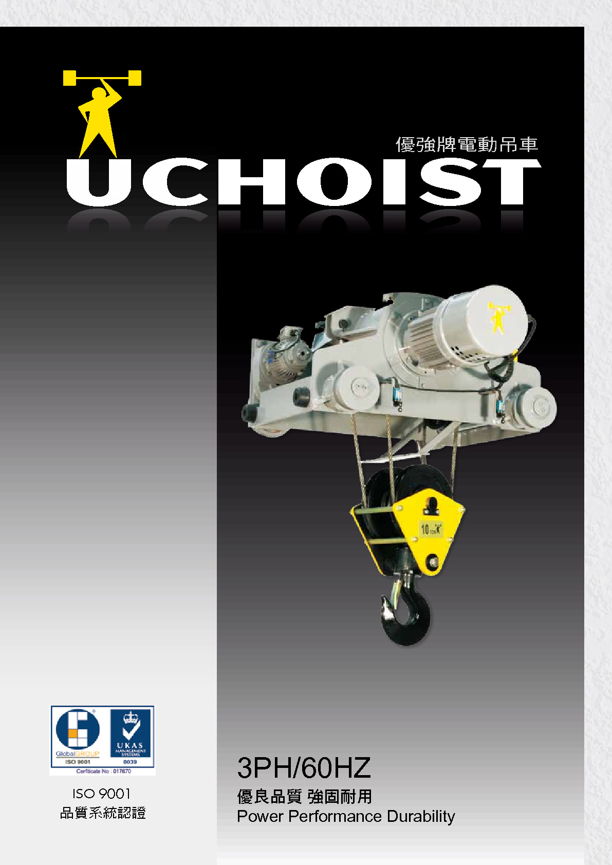 Founded in 1979, YU CHIANG Machinery is UCHOIST with our own brand to explore hoist market. With over 40 years experience in the design and manufacture of overhead cranes, electric wire rope and chain hoists and gantry cranes we know how to hoist! Well known and respected in Taiwan; we pride ourselves on innovative design, professional service and good quality.