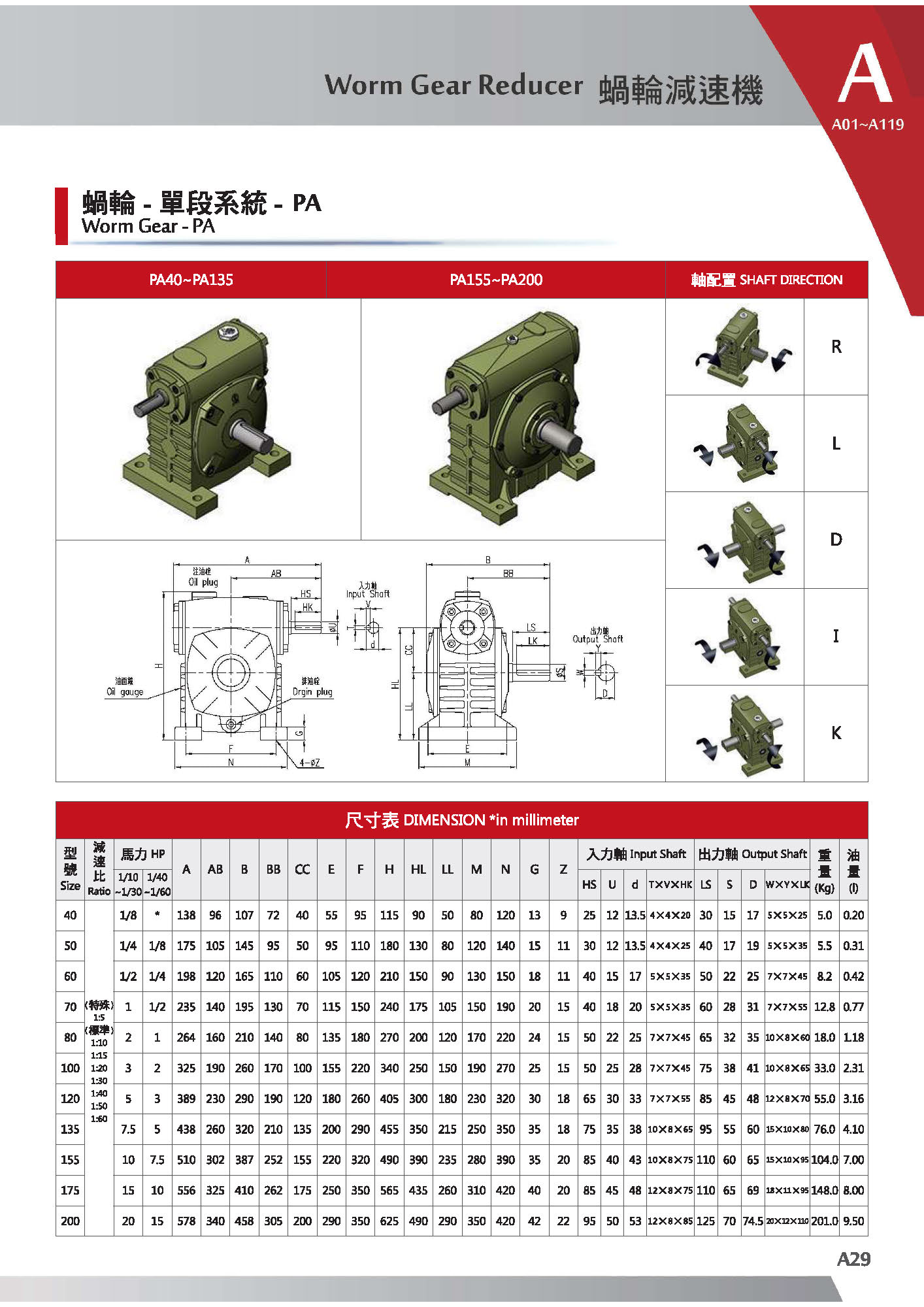 4) Worm Gear Reducer and the function of AUTO-LOCK.