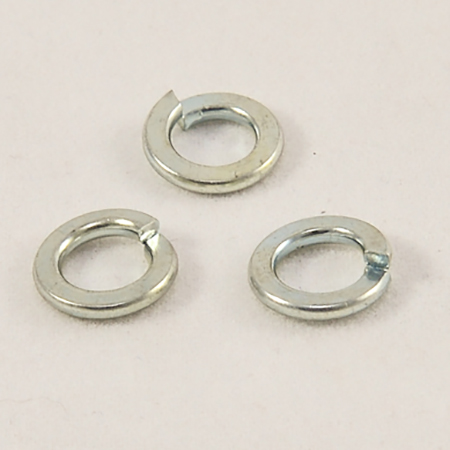 Split lock washers provide greater bolt tensioning for tighter assemblies and provide protection against loosening resulting from vibration. Lock washers can be used with a standard washer to provide uniform bearing surface. Regular and heavy lock washers are available in plain, mechanical zinc, or mechanical zinc/yellow finishes. High-alloy lock washers are available in mechanical zinc/yellow finish.