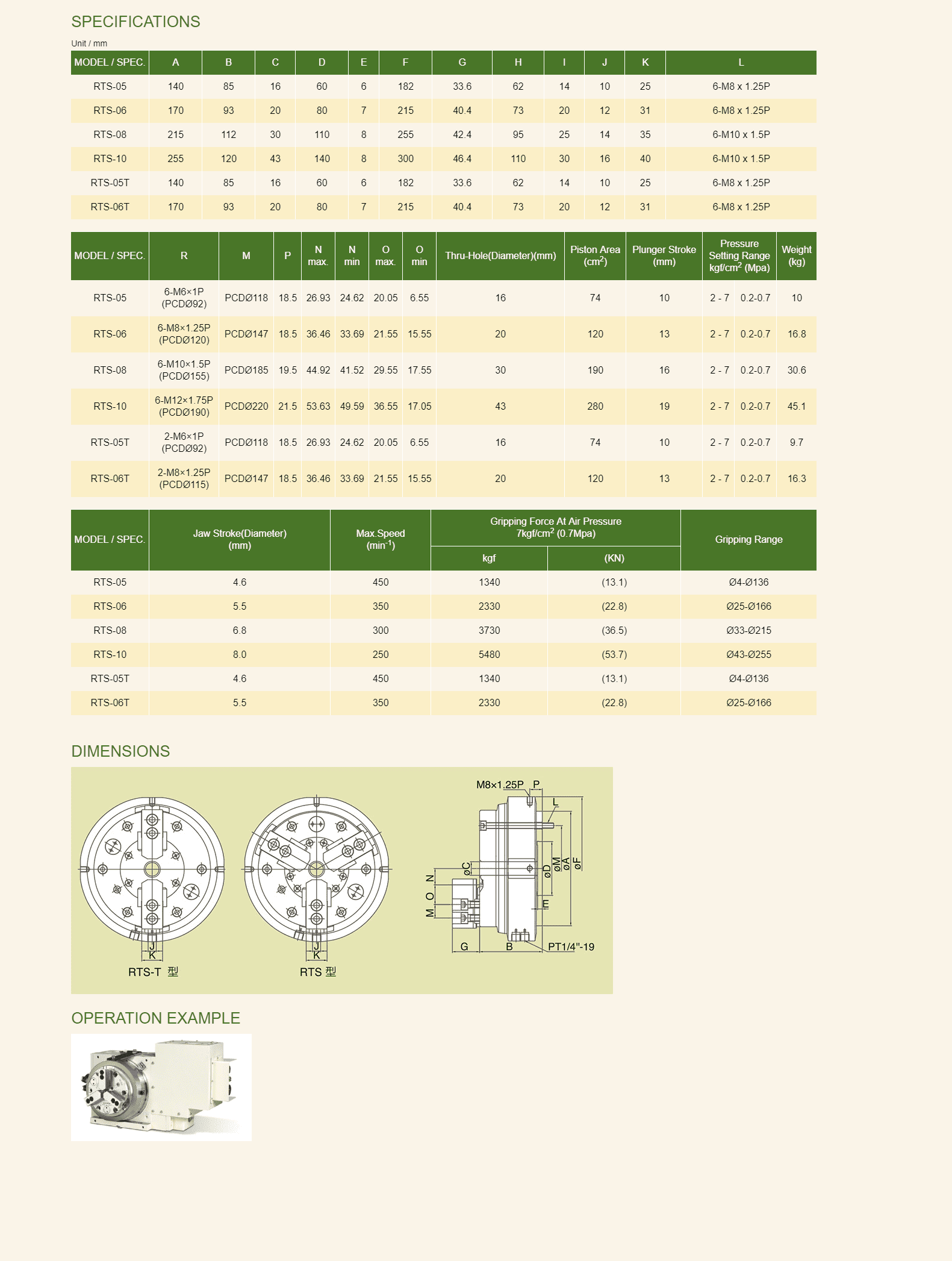 4. Integral pneumatic cylinder: Connect chuck and built-in cylinder to each other directly;thus enables operation stability. Moreover,it is more convenient for installation and operation since the use of draw tube and draw bar are no longer necessary.