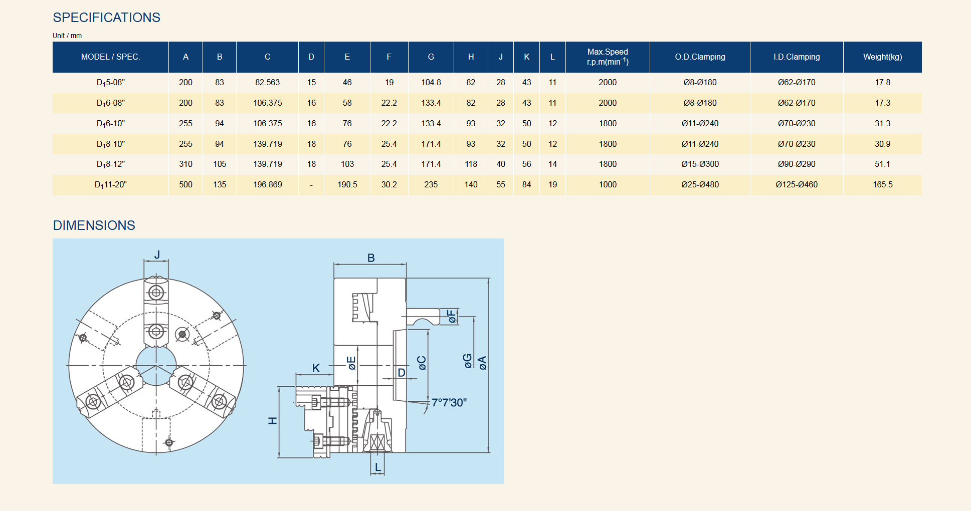 3-Jaw D1 Type Chucks