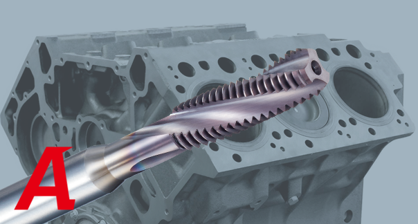 Carbide A-TAP enables high-speed tapping even in cast iron and aluminum alloy. Enlarged oil hole specification improves chip evacuation and tool life.