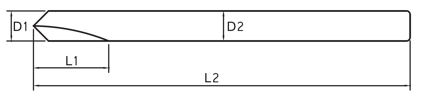 | Part No. | Diameter (D1) | Flute Length (L1) | Angle (θ) | Shank Diameter (D2) | Overall Length (L2) |