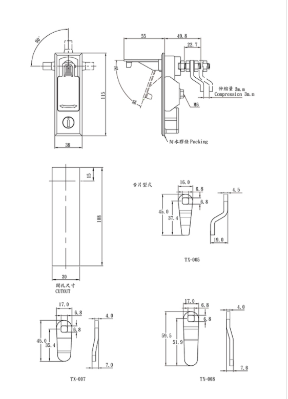 Dual function - compression latch and door handle - in one assembly. Easy to install and easy to operate. Simply lift the handle to release the compression, and turn it to rotate the cam out from behind the frame. Multiple cam options and adjustable cam positioning enable a single latch model to accommodate a wide variety of grip dimensions