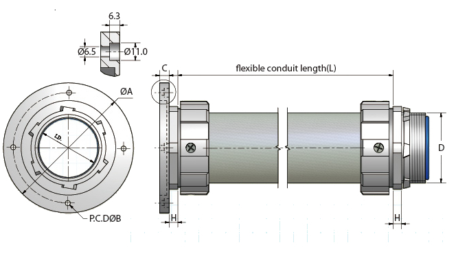 - The suspension flange is assembled with flexible braiding conduit and the 355° rotation angel offers wide operating direction.