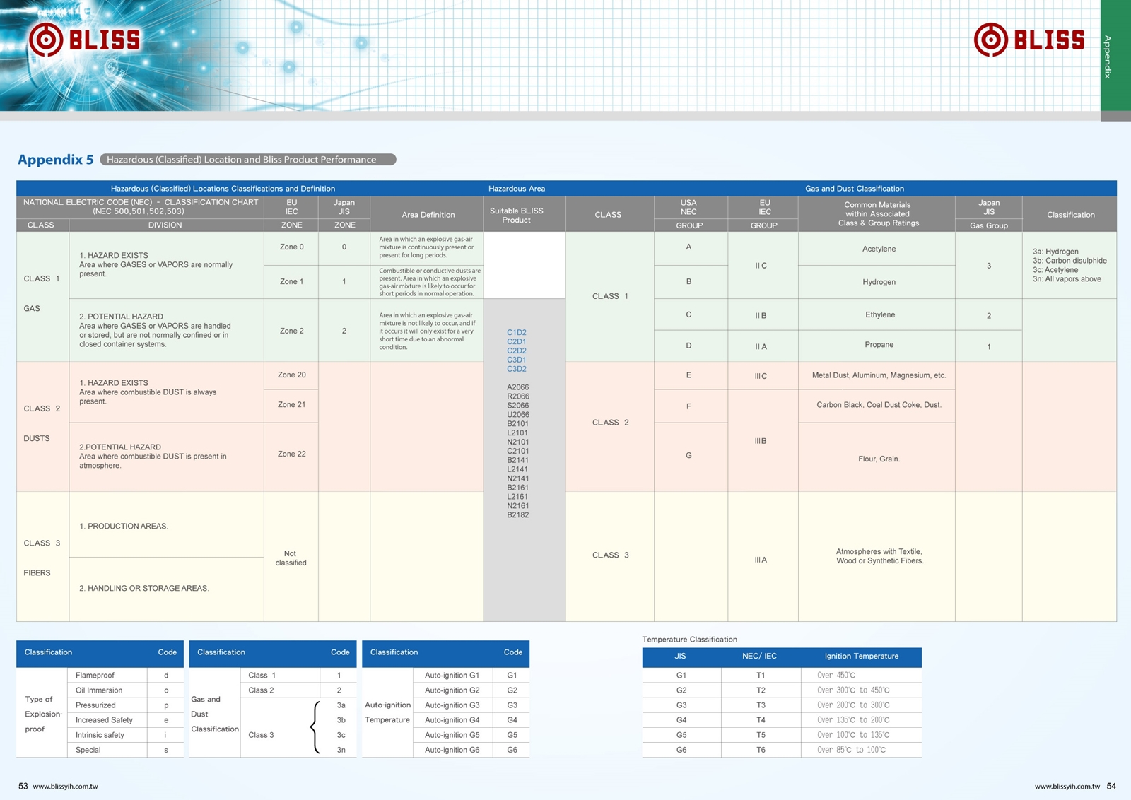 - Appendix 5 Hazardous (Classified) Location and Bliss Product Performance