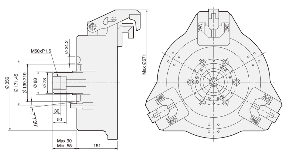 Mounting : Adaptor mounting to fit with DIN, ISO, BS, ASA, B5-9 type A spindles.