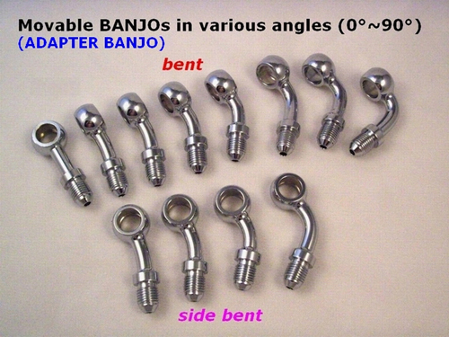 1000 series movable BANJO Material: Steel in Chrome Hole: 10mm Thread: 3/8-24 Angle: Straight、15°、20°、30°、45°、60°、90°