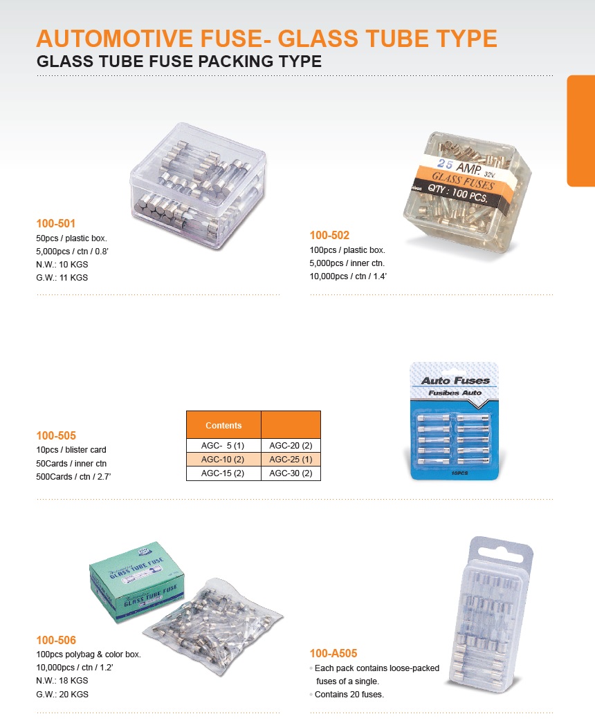 Item no: AGX * American Car Fuses * 6.35 x 25.4mm (1/4 x 1 inch) * Ampere Rating: 1A-30A * Voltage Rating: 32V DC * Standard: UL248-14