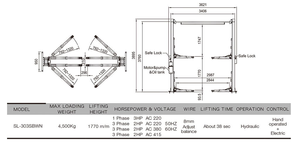 SL-303SBW-GATE TYPE TWO POST LIFT(WIRE TYPE)(4.5tons)