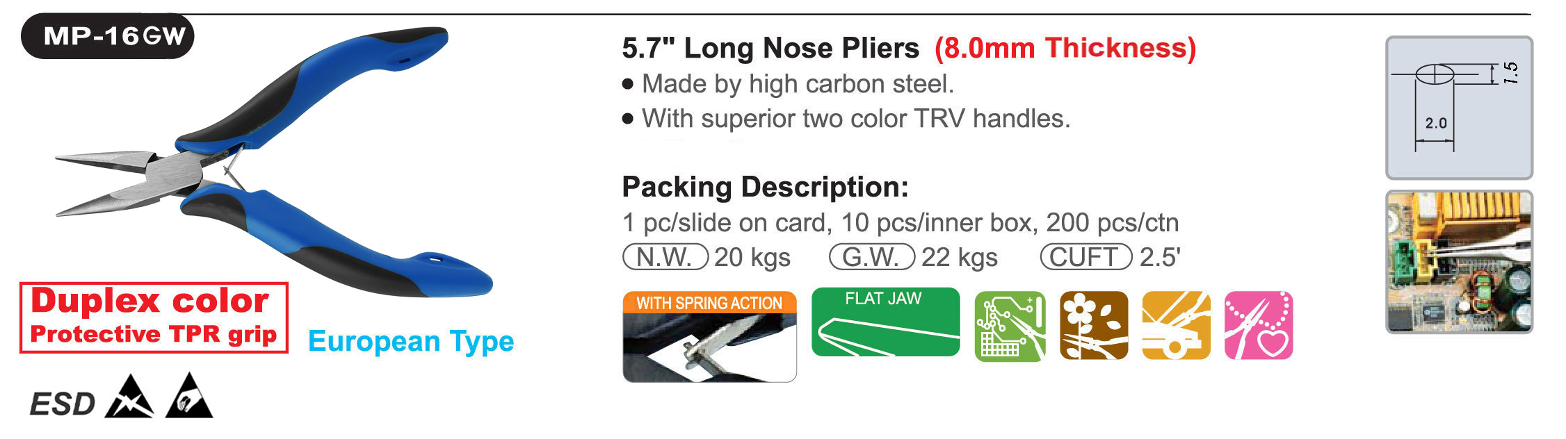 ELECTRONICS GRIPPING PLIERS ESD-LONG NOSE PLIERS ESD