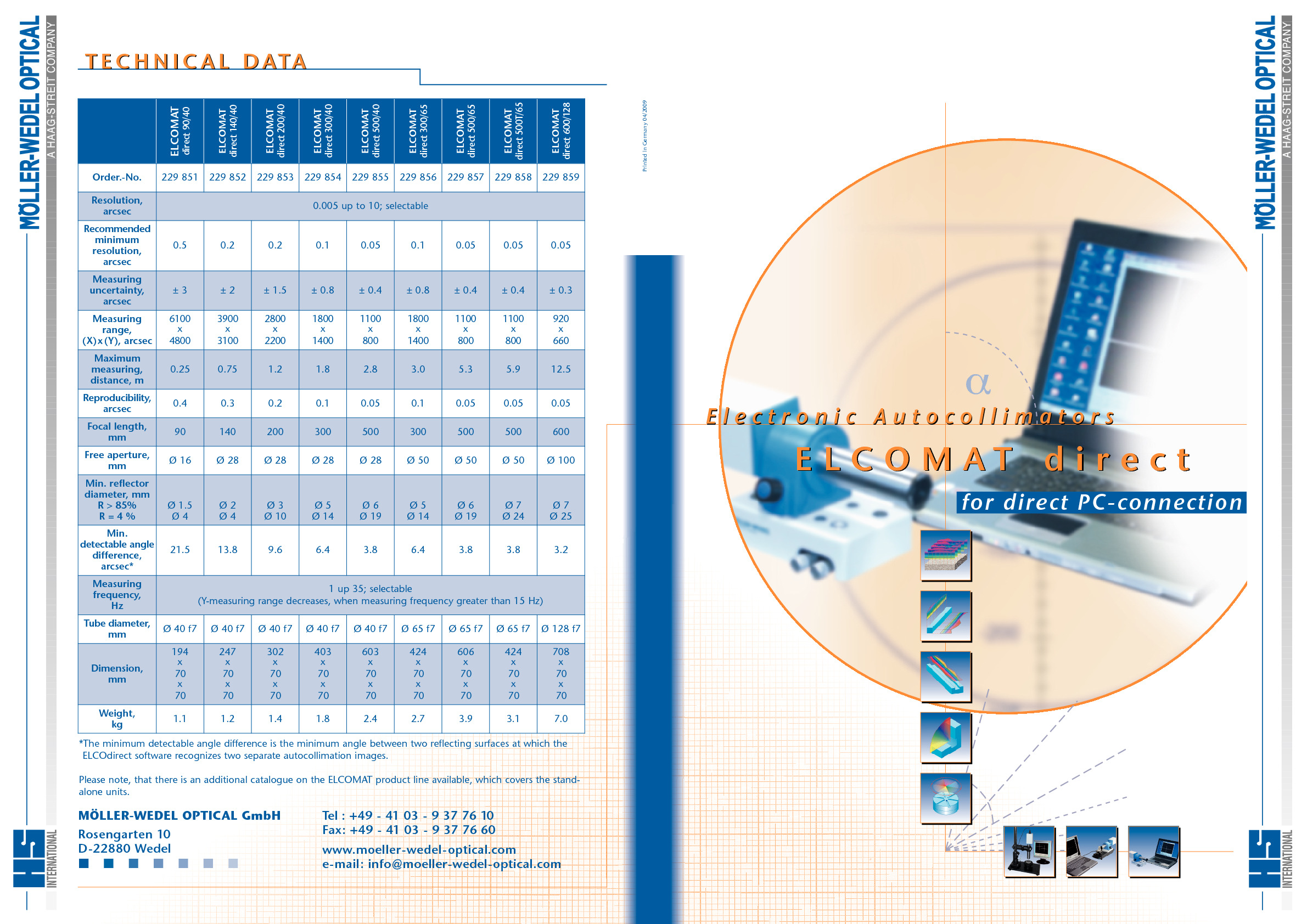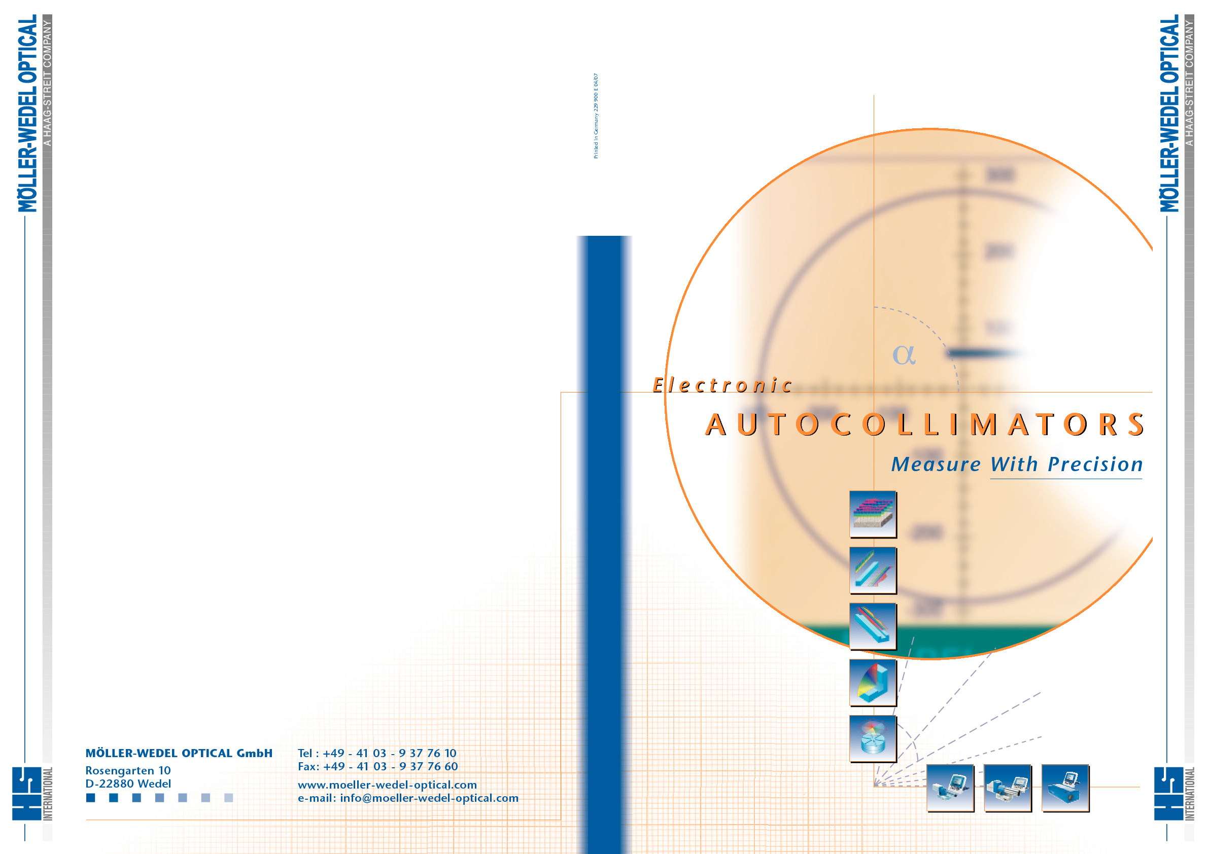 • 德國Möller-Wedel-Optical GmbH所生產之光學檢測儀器,如干涉儀、球徑計、測角及頻譜儀、自動準直儀(視準儀)及光學檢測系統等儀器。