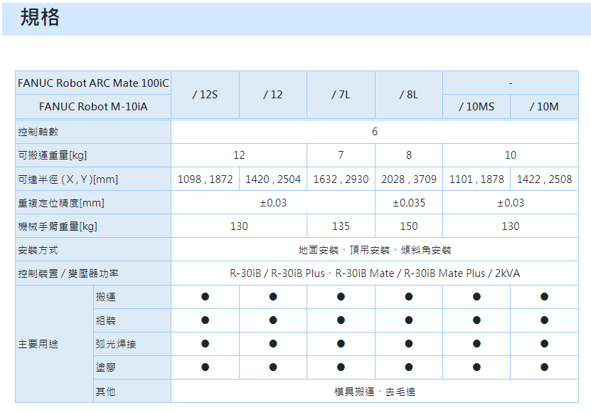 ※ FANUC Robot M-10iA 是可搬運重量為7~12kg級別的小型搬運機器人。