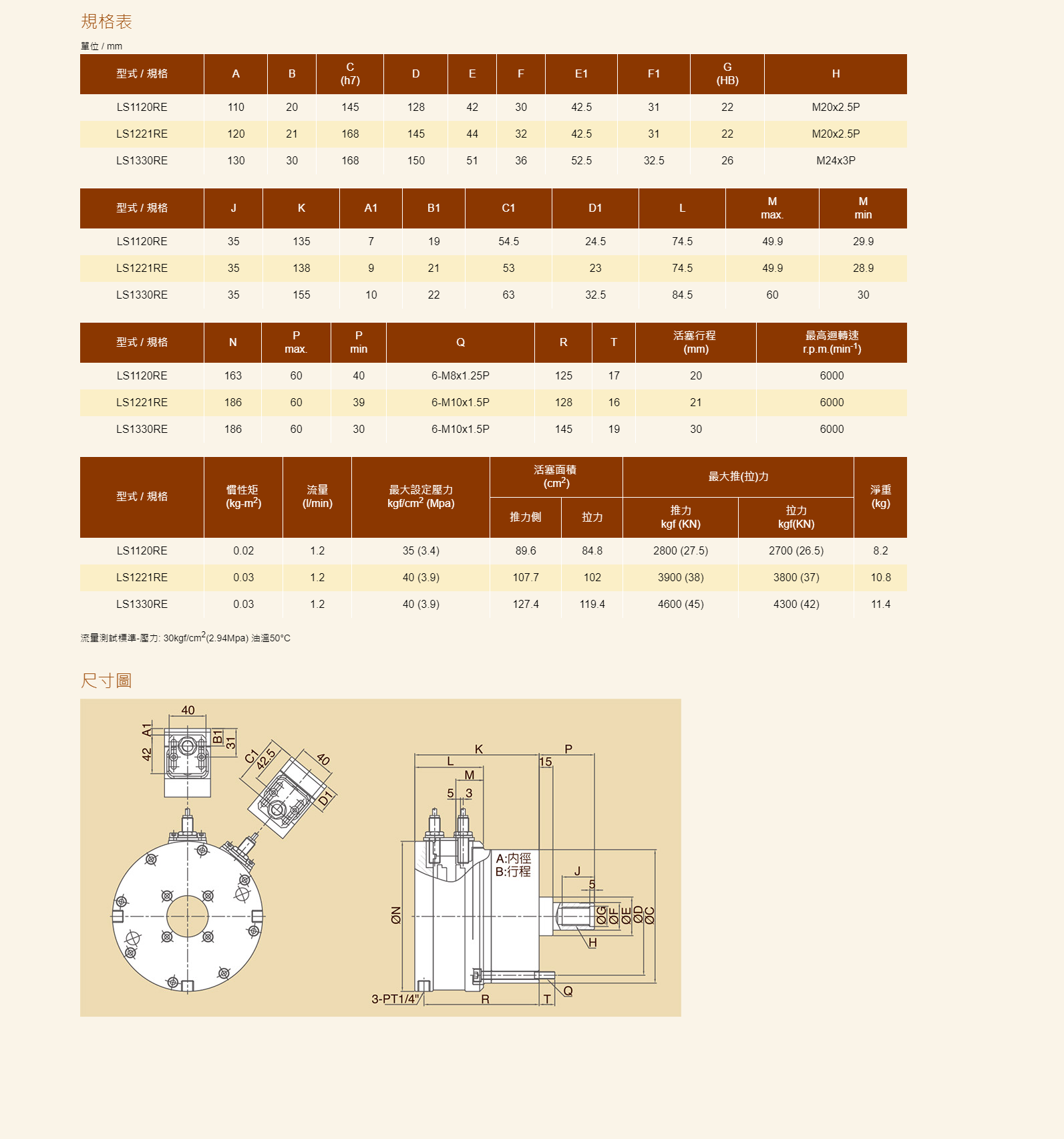 LS-RE-超薄型中實油壓迴轉缸 (附止逆及檢知裝置)