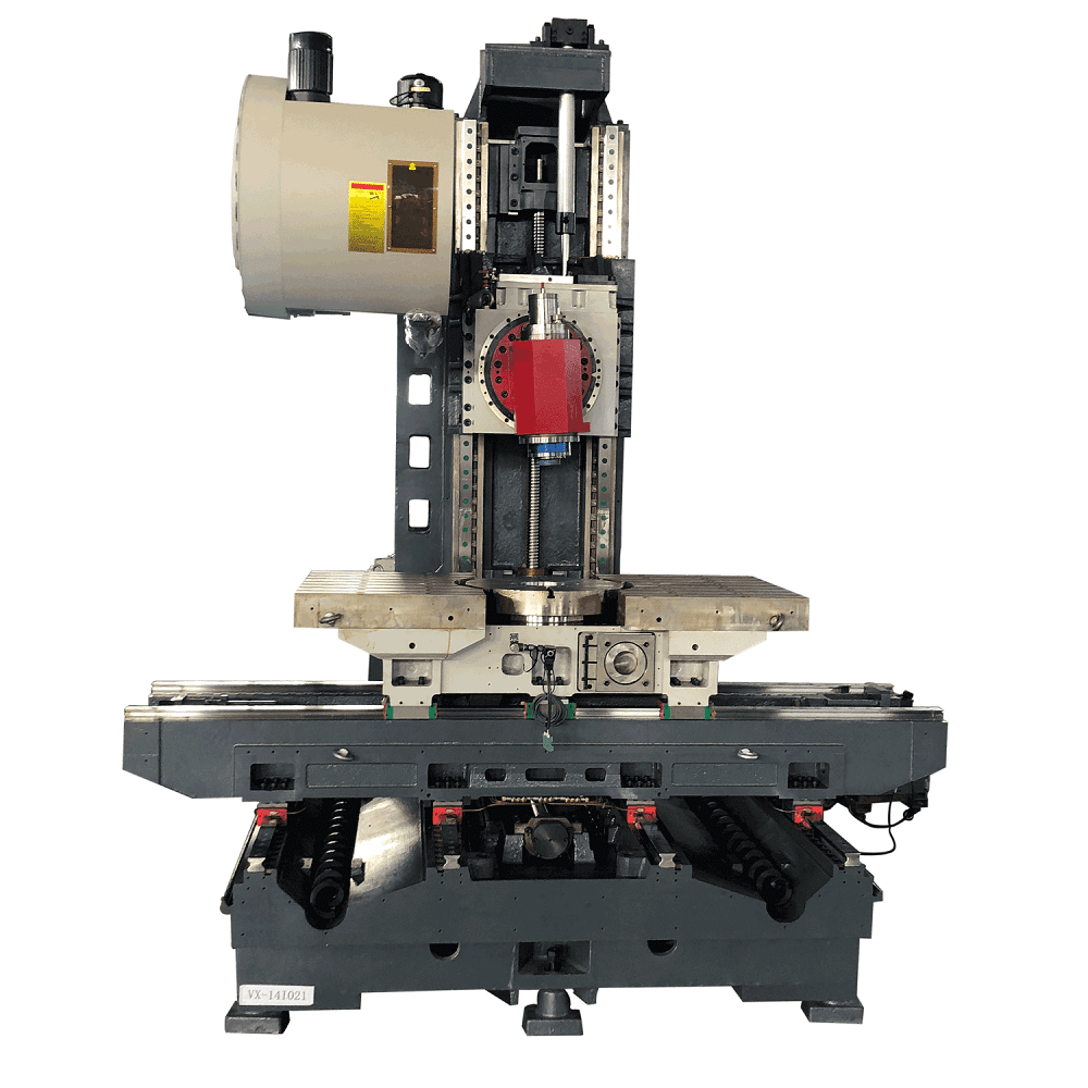 C軸旋轉工作台採用高精度渦輪渦桿設計。工作盤面直徑500mm,最高轉速22.2rpm。最小分割角度為0.001°蝶式油壓煞車。
