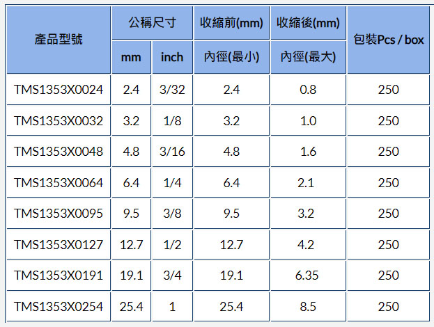 採用阻燃聚烯烴材料製成, 是專為電纜線標誌而設計的熱縮套管。TMS具有極柔軟與薄壁特性, 方便提供給標籤印字機直接列印, 印出效果持久清晰。