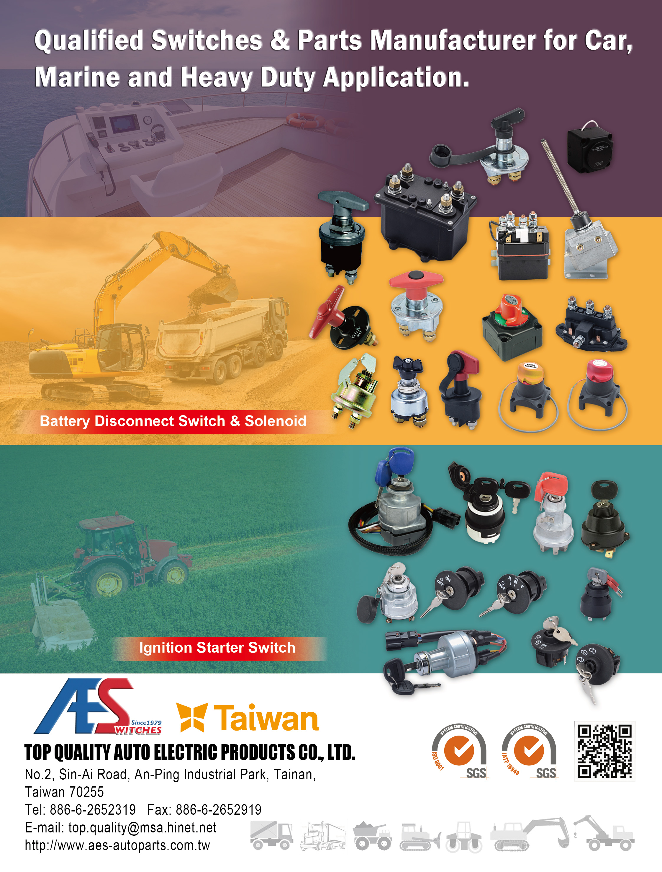 汽車電裝開關,車船用配線器材,堆高機零件,卡車零件,拖車零組件,汽車零件,起動馬達開關,起動馬達開關