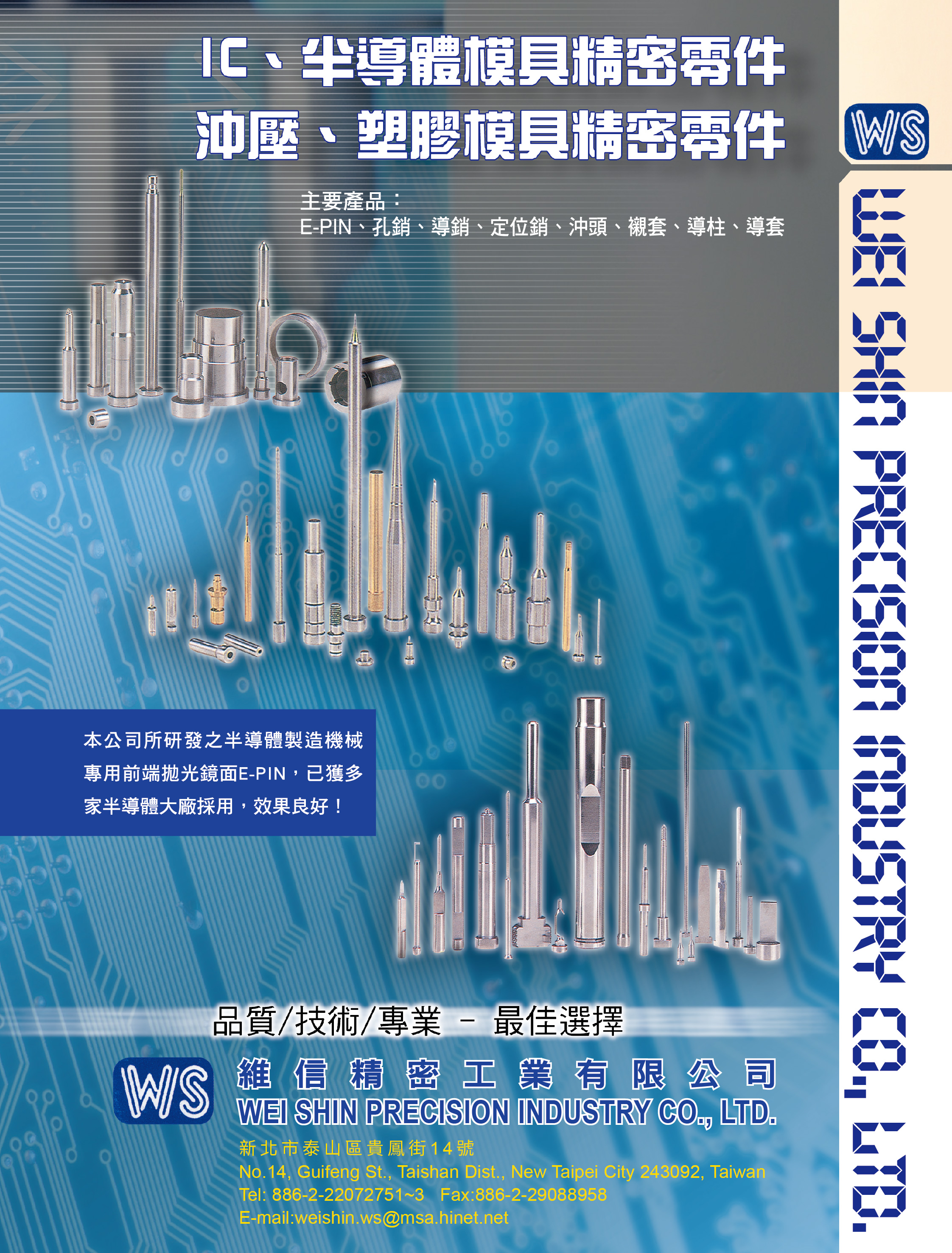 導柱,導套, 回位梢, 頂出導套, 頂出導柱, 支撐柱, 小拉桿, 小沉頭, 固定梢, 墊片, 停止梢, 止動梢, 拉桿墊片, 定位圈 高速鋼 冷模合金鋼 熱模合金鋼 碳素工具鋼 構造合金鋼 博威精密工業股份有限公司